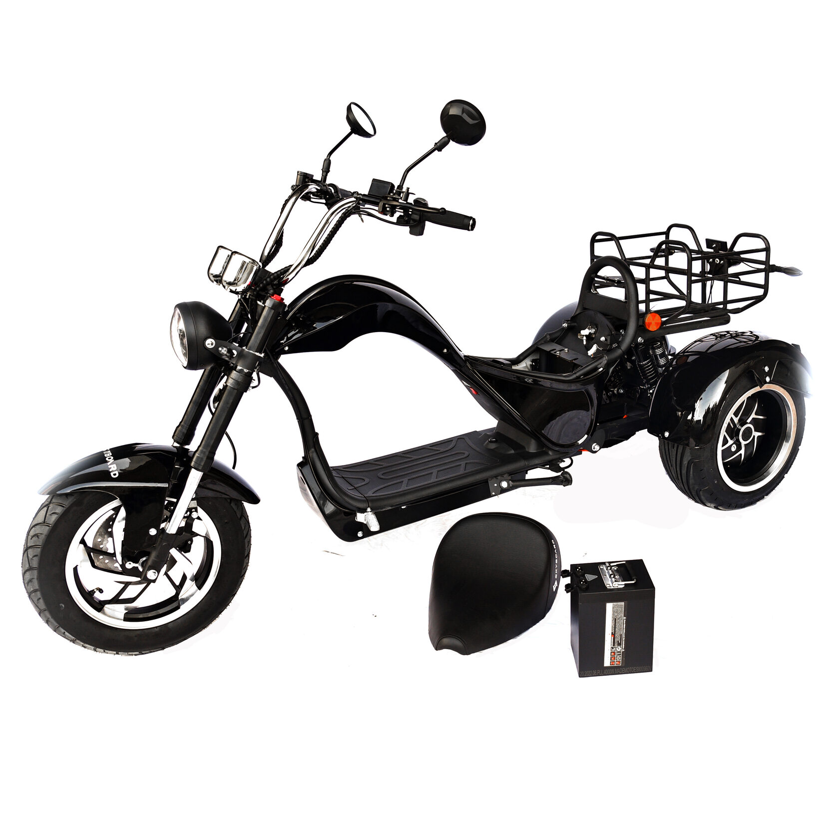 Skyboard Dnepr Chopper 4000W предлагает одноместное сиденье с корзиной, которое можно легко заменить на дополнительное сиденье или кофр для большей функциональности. Регулируемые воздушно-масляные амортизаторы обеспечивают плавность хода, а профессиональная гидравлическая тормозная система гарантирует безопасность на высоких скоростях.