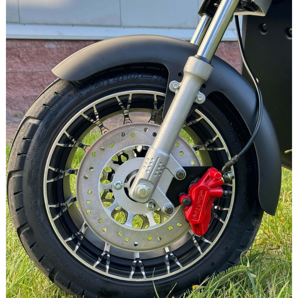 Электроскутер оснащен гидравлическими тормозами, которые обеспечивают надежное и быстрое торможение в любых условиях. Это особенно важно для городских поездок, где необходима высокая степень контроля. Задний привод обеспечивает отличную маневренность, позволяя уверенно чувствовать себя на поворотах.