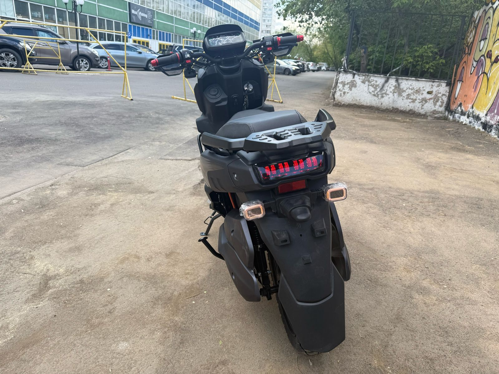 Несмотря на отсутствие зеркал, электроскутер предлагает отличную видимость и управление, что делает его идеальным выбором для городских поездок и путешествий по пересеченной местности.
