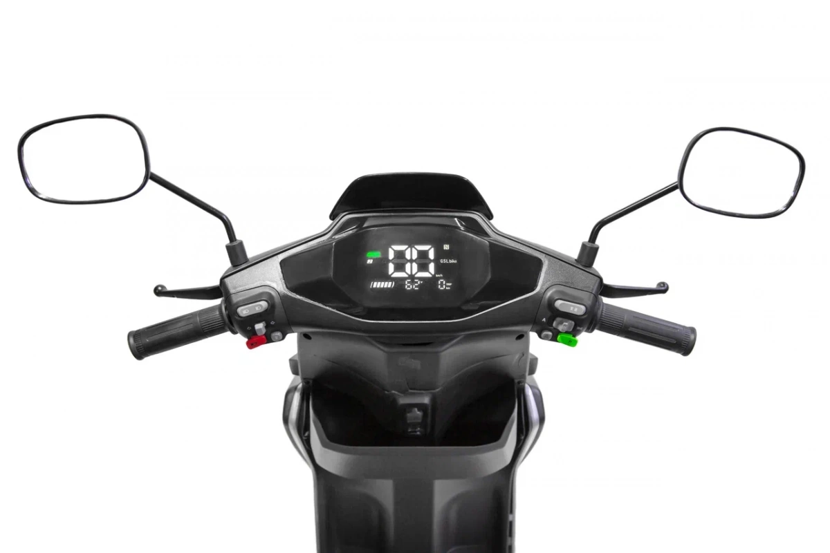 Электроскутер оборудован гидравлическими тормозами, которые гарантируют надежное и безопасное торможение, особенно в условиях плотного городского трафика. Удобное сиденье и подножка добавляют комфорта во время поездок, а дисплей предоставляет всю необходимую информацию о состоянии скутера и его параметрах.