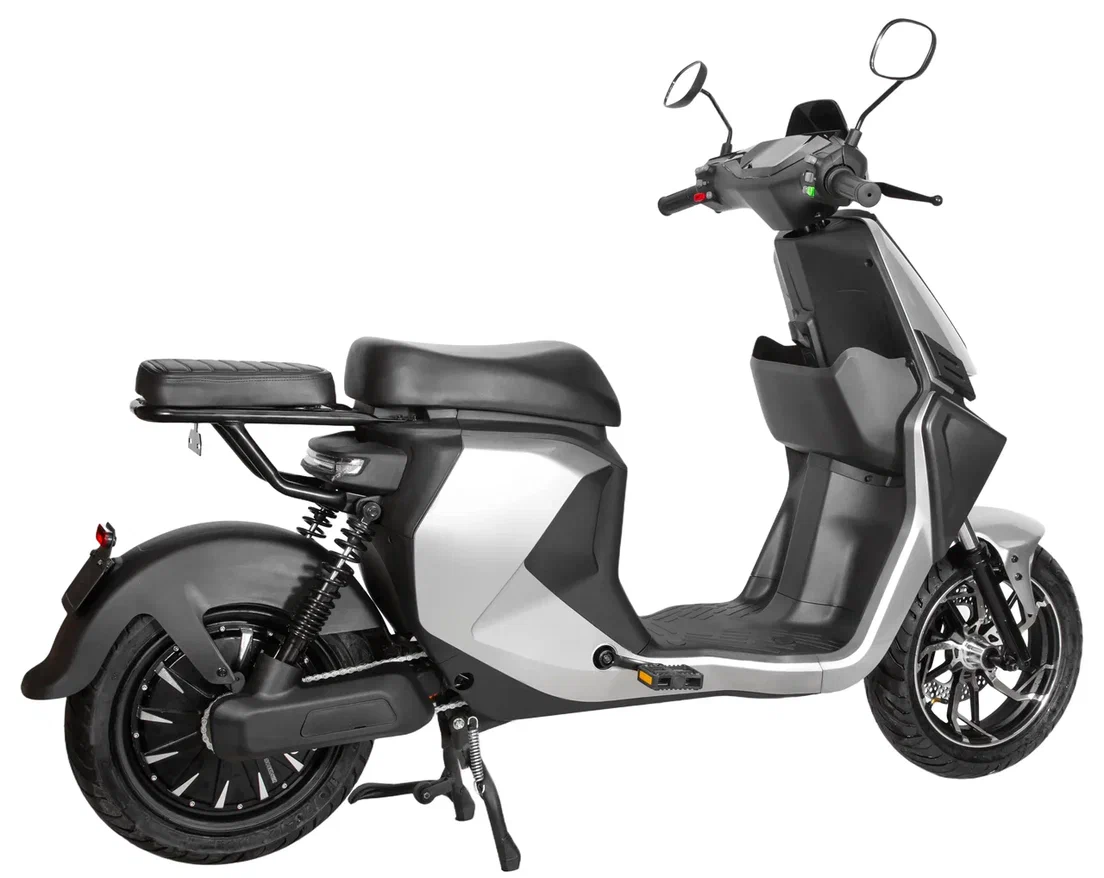 С двумя колесами, этот электроскутер легко управляется и подходит как для опытных водителей, так и для начинающих. Его прочная конструкция гарантирует долговечность и надежность в эксплуатации.
