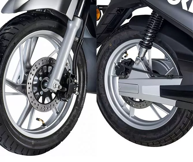 - Гидравлические дисковые тормоза с системой CBS гарантируют безопасное и эффективное торможение.