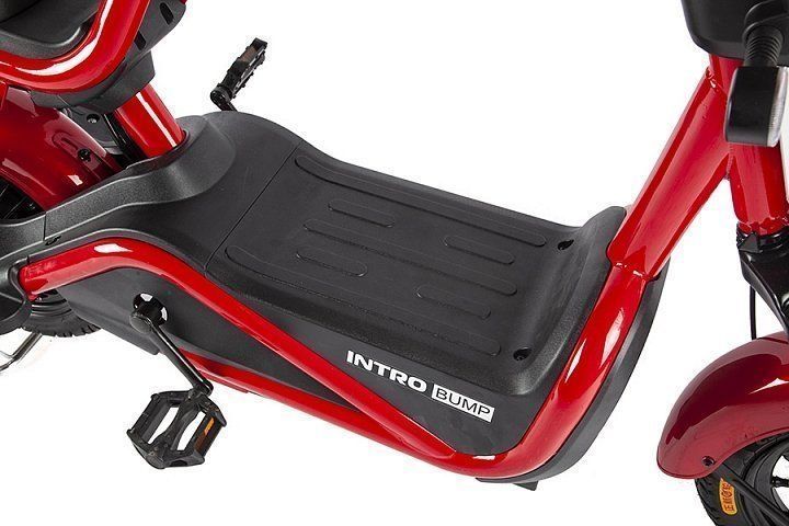 Intro Bump представлен в трёх вариантах цветов. Этот компактный современный скутер бесшумен и не вредит экологии - ведь он не имеет выхлопа! Не нужно думать о бензине и масле. Питание электромотора происходит за счёт комплекта тяговых гелевых аккумуляторов Rutrike, разработанных специально для электротранспорта.