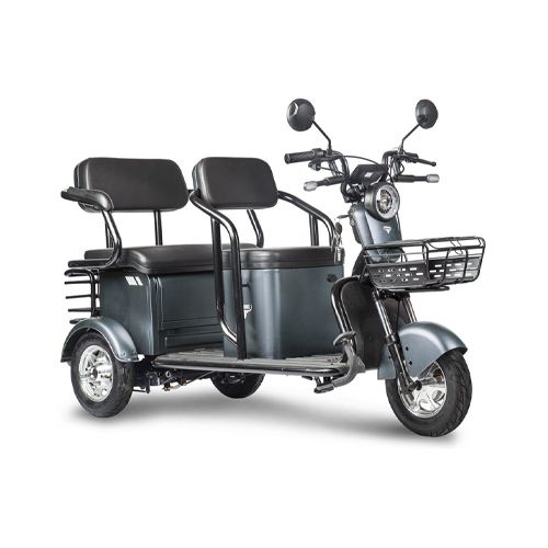 Трицикл Rutrke Караван - прекрасное универсальное транспортное средство! Задний ряд сидений откидывается, образуя вместительный кузовной отсек, тем самым превращая пассажирский электроскутер в компактный грузовичок, которому всегда найдётся работа в хозяйстве! Дополнительную практичность обеспечивают две прочные металлические корзины: спереди и сзади.