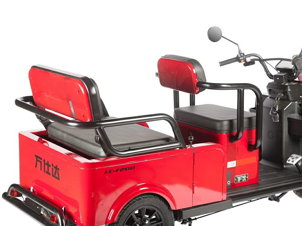Габариты трицикла составляют 190 см в длину, 92 см в ширину и 74 см в высоту, а вес — 184 кг. Эти параметры делают Wanshida LC-F200 достаточно компактным для городских условий, при этом обеспечивая комфортное пространство для двух пассажиров.