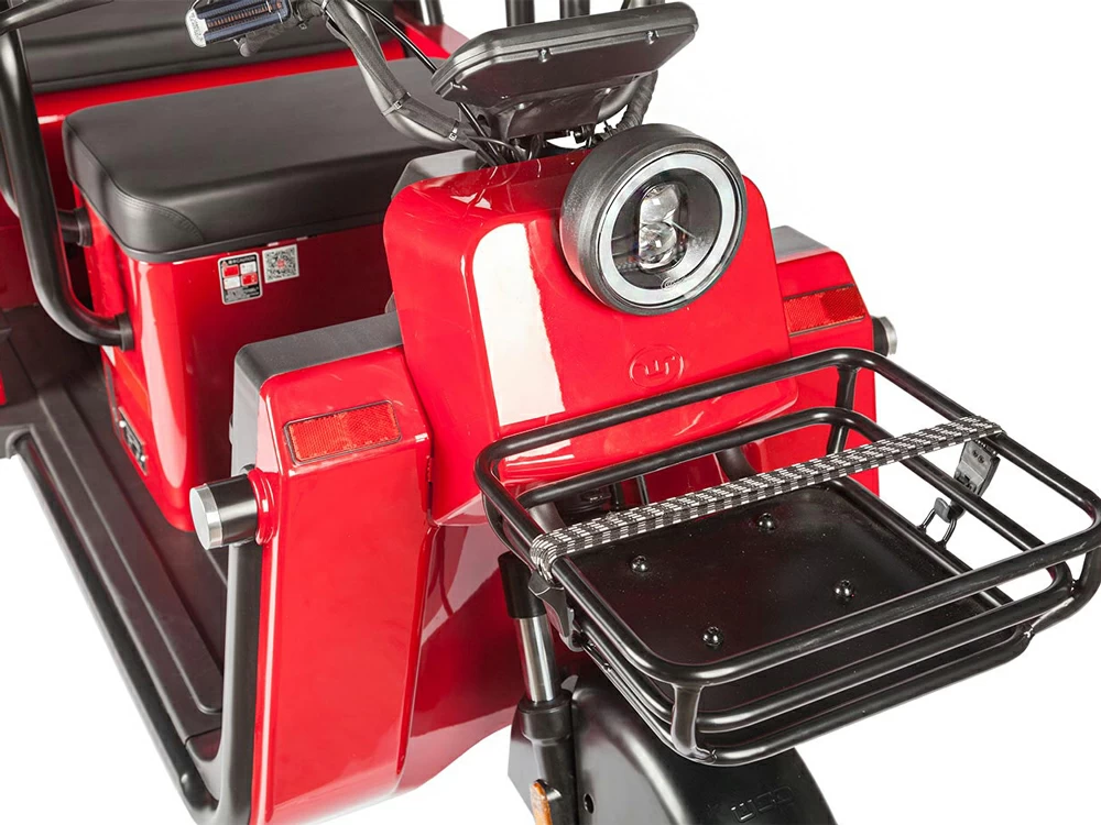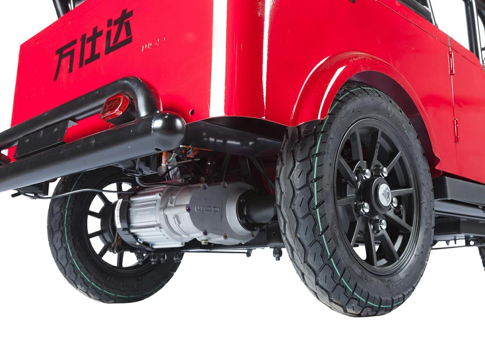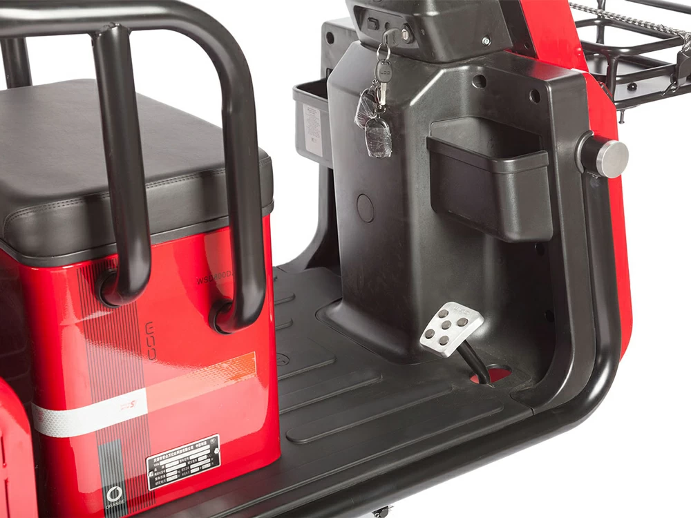 Электрический двигатель мощностью 1000 Вт обеспечивает высокую динамику и отличную тягу, что особенно важно при движении по холмистой местности или при полной загрузке трицикла. Аккумуляторная батарея типа SLA (свинцово-кислотный) с напряжением 60 В и емкостью 20 А⋅ч гарантирует надежную работу и длительный срок службы.