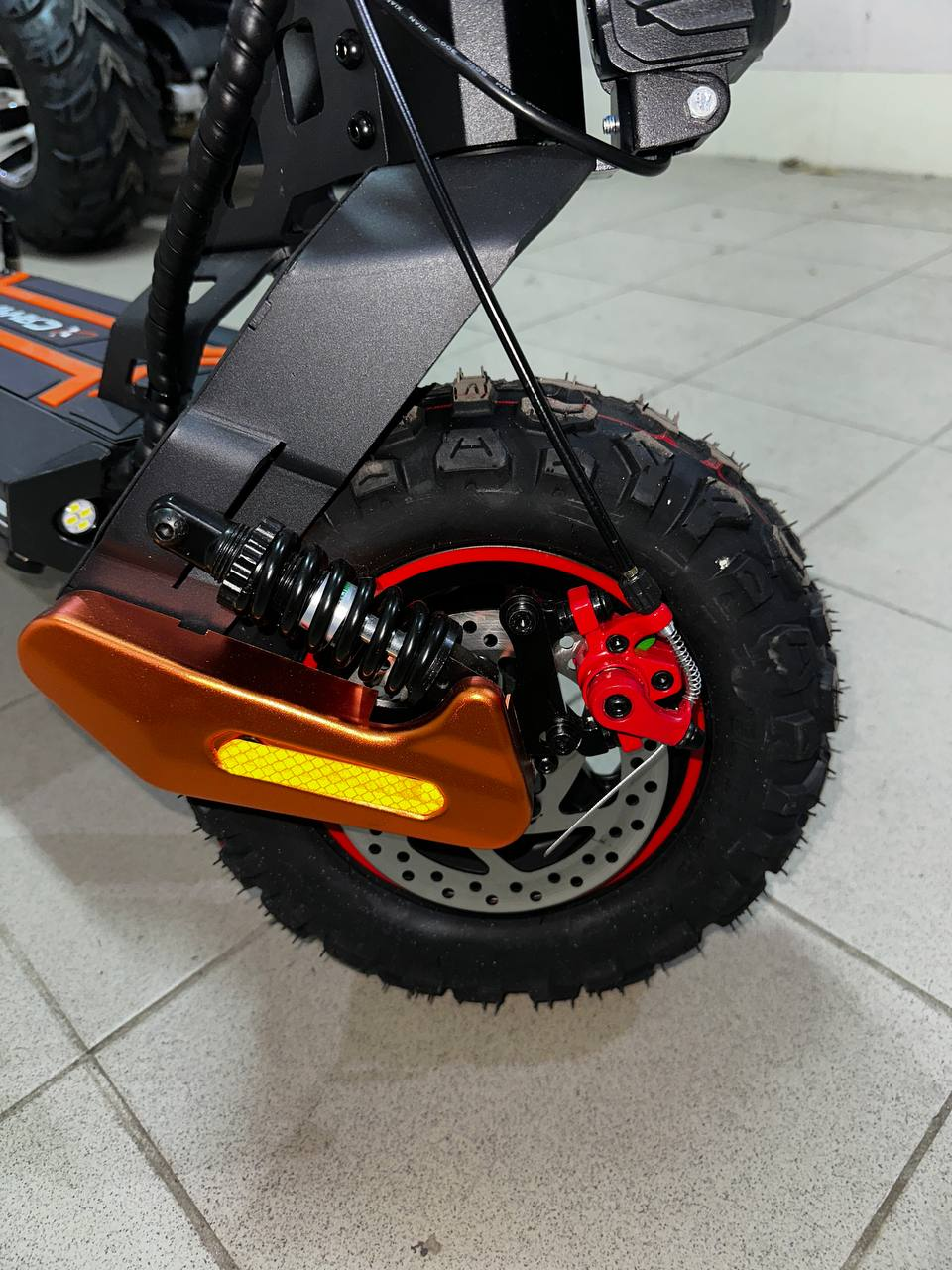 Для обеспечения комфортной езды электросамокат оборудован пружинными амортизаторами, которые эффективно сглаживают неровности и обеспечивают плавный ход на снежных и льдистых поверхностях. Дисковые тормоза гарантируют надежное и быстрое торможение, что особенно важно в условиях скользкой дороги. Задний привод обеспечивает отличное сцепление с поверхностью, позволяя уверенно управлять самокатом.