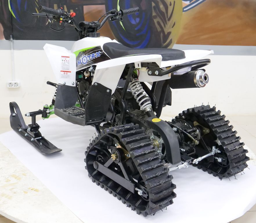 Cнегоцикл Gekkon Snow - это снегоход на гусеничном ходу, построенный на базе квадроцикла Motax Gekkon 70 cc. С возможностью переоборудования в полноценный квадроцикл на летний сезон. Он отлично подойдёт для детей в возрасте от 3 до 9 лет.