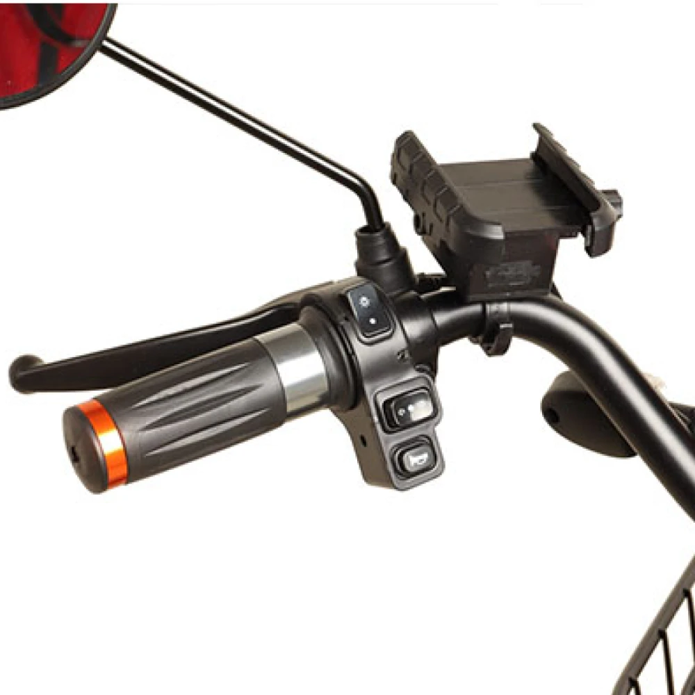 Безопасность на дороге обеспечивается барабанными тормозами, которые гарантируют надежное торможение в любых условиях. Дополнительные функции, такие как передний фонарь, поворотники и сигнал, повышают видимость и безопасность в темное время суток, что особенно важно для городских поездок.