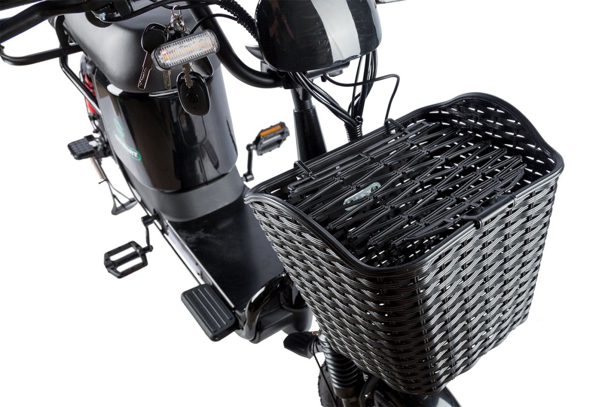 Наличие корзины делает Gelbert Condor 1 еще более практичным выбором, позволяя удобно перевозить покупки или личные вещи. Отсутствие складного механизма делает этот электровелосипед более надежным в эксплуатации, что особенно важно для тех, кто ищет простой и эффективный способ передвижения.