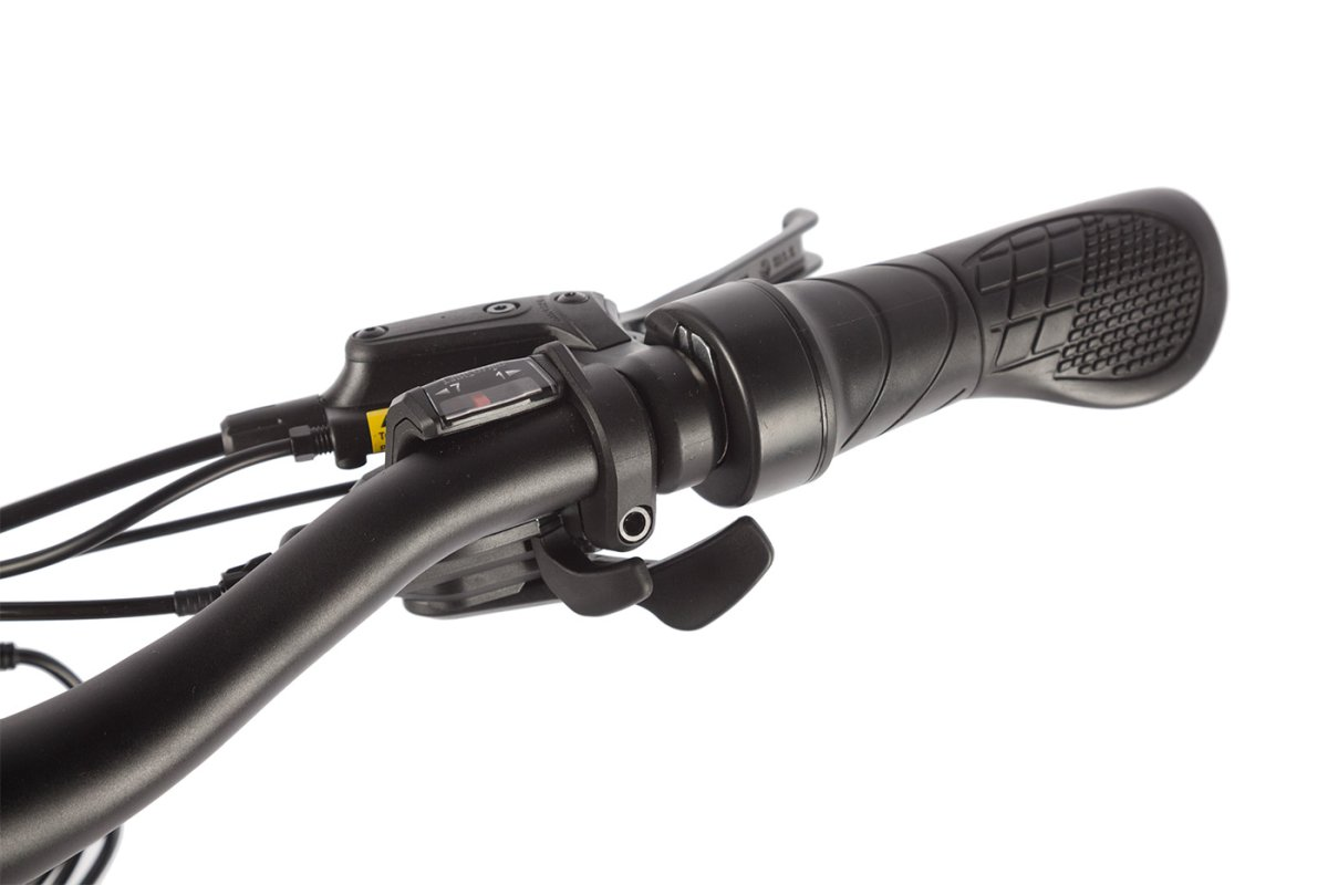Электровелосипед оснащен дисковыми гидравлическими тормозами, которые обеспечивают высокую эффективность торможения. Эта система значительно повышает безопасность и уверенность во время поездок, особенно на сложных маршрутах.