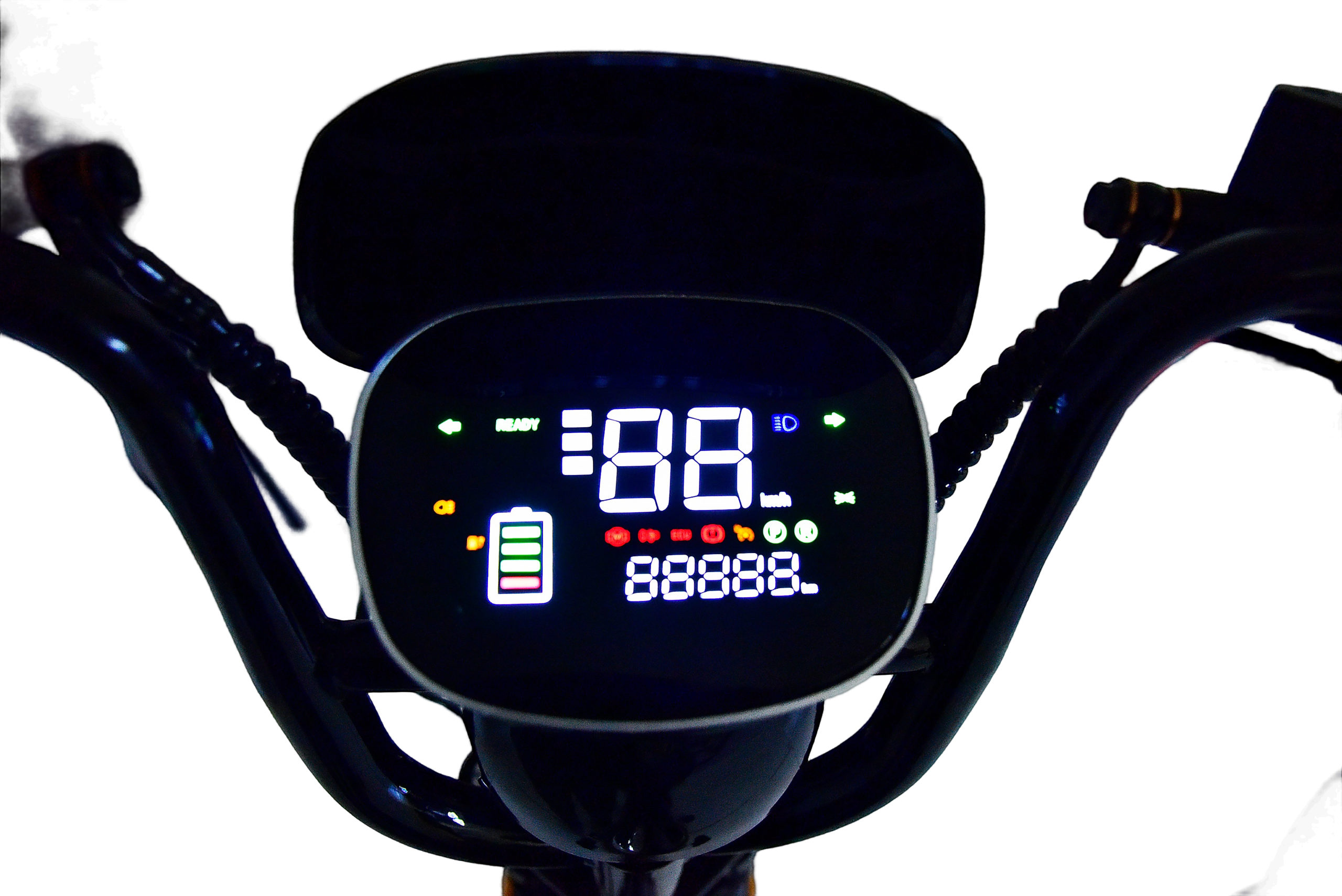 Бесщеточный мотор без редуктора (Thick Hua) мощностью 500 Вт с магнитной системой 24×20 мм обеспечивает высокий крутящий момент на низких оборотах и плавный разгон. Отсутствие редуктора повышает надежность двигателя, снижает потери энергии и увеличивает общий КПД всей системы. Интеллектуальный контроллер 60 В 28 А (9G) управляет работой двигателя, оптимизируя подачу мощности в реальном времени в зависимости от нагрузки и рельефа.
