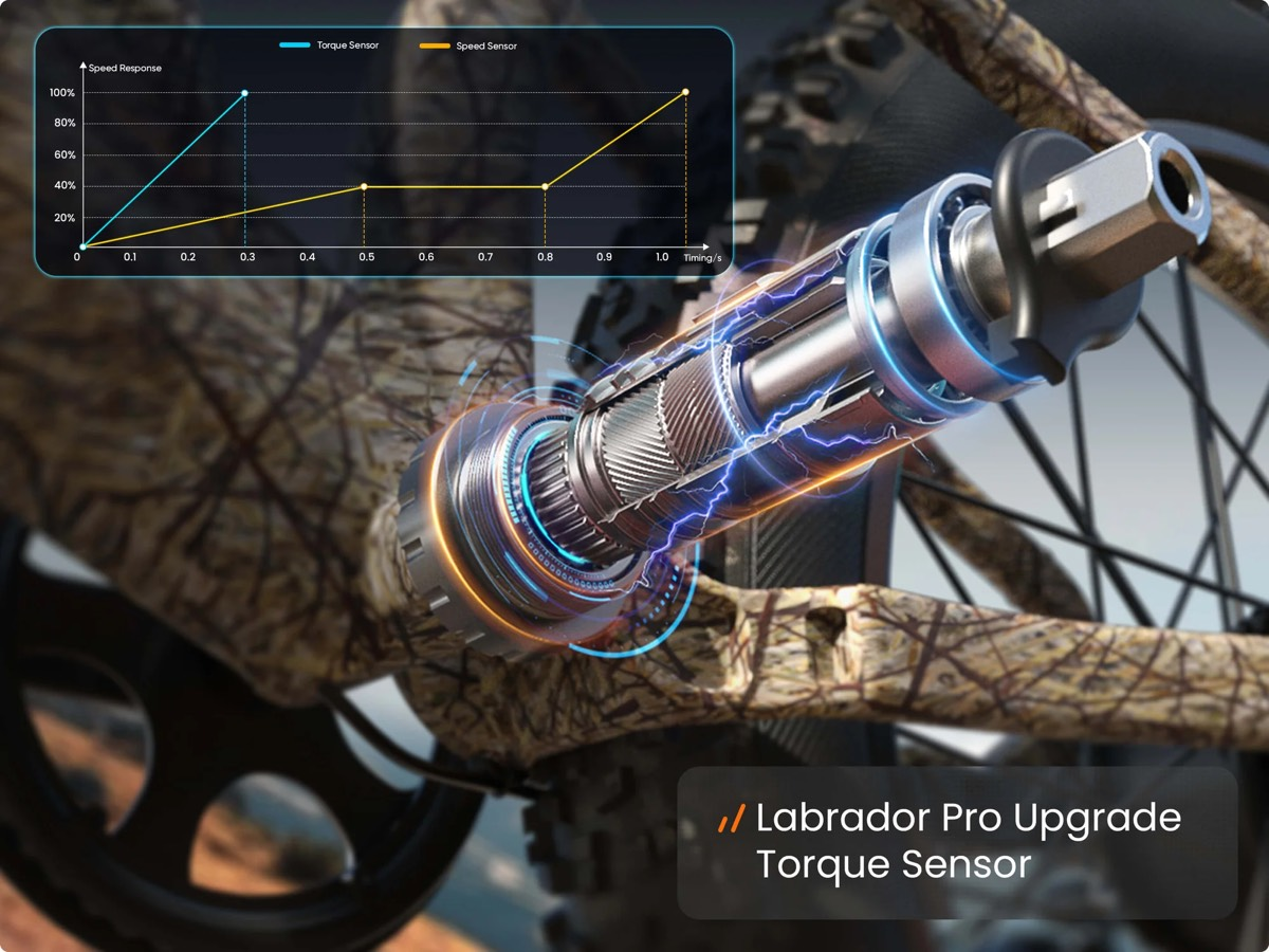 Ручная дроссельная заслонка даёт возможность управлять мощностью двигателя без педалирования — достаточно повернуть ручку, и велосипед поедет. Датчик момента интеллектуально регулирует уровень помощи мотора в зависимости от усилия на педалях. Чем сильнее вы крутите, тем больше помощи даёт двигатель, создавая естественное ощущение езды на обычном велосипеде. Благодаря этому вы можете экономить заряд батареи и выбирать наиболее удобный режим в любой ситуации.