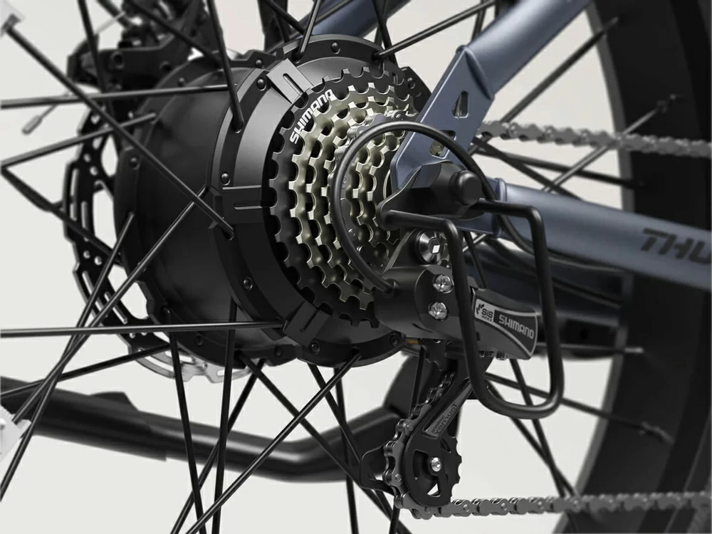 Семискоростная трансмиссия SHIMANO позволяет водителю подбирать оптимальное передаточное отношение в зависимости от рельефа и скорости движения. Механическая часть работает независимо от электропривода, поэтому при разряженной батарее или желании получить физическую нагрузку велосипед можно использовать в обычном режиме. Переключение передач осуществляется манетками на руле и отличается плавностью и надежностью даже при интенсивной эксплуатации.