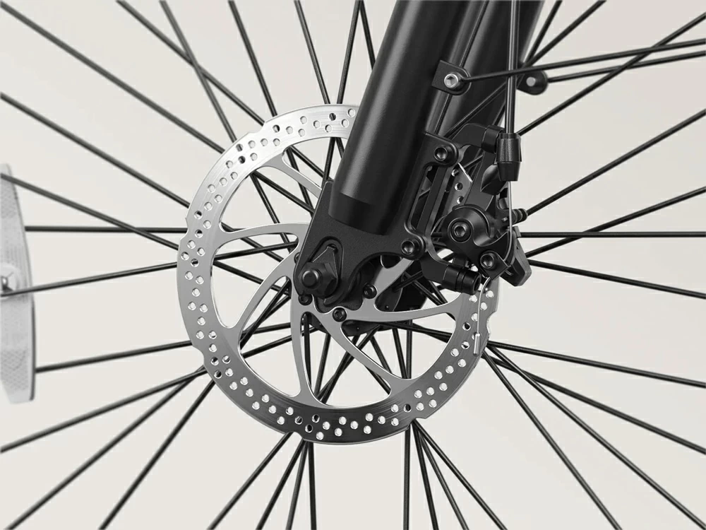 Дисковые тормоза установлены как на переднем, так и на заднем колесе. Механический привод тормозов прост в обслуживании и обеспечивает эффективное замедление в любых погодных условиях, включая дождь и мокрую грязь. Тормозные колодки легко заменяются по мере износа без необходимости специального инструмента.