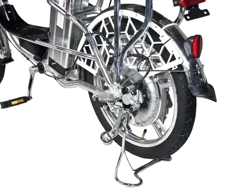 умеет дополнительное сидение для второго пассажира и сетку для продуктов спереди. Идеальный загородный вариант электровелосипеда. - Относительно небольшой вес - 28 кг - и компактные габариты дают возможность провозить электровелосипед в общественном транспорте, что значительно повышает Вашу мобильность!