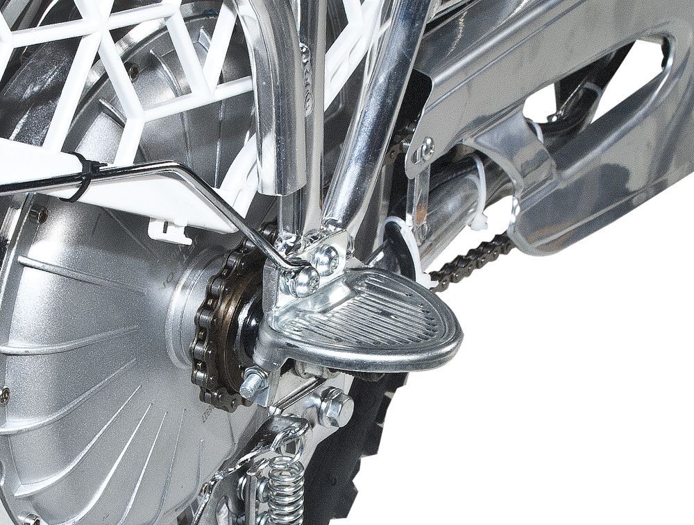- гидравлический задний тормоз и внедорожные покрышки для удобной езды по снегу и бездорожью