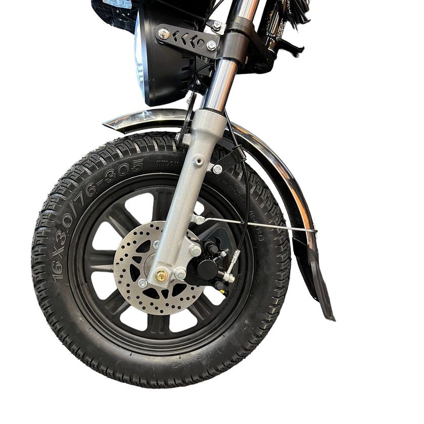Аккумулятор ёмкостью 18АH 60V позволяет преодолевать расстояния до 55 км. в режиме использования только ручки газа.
