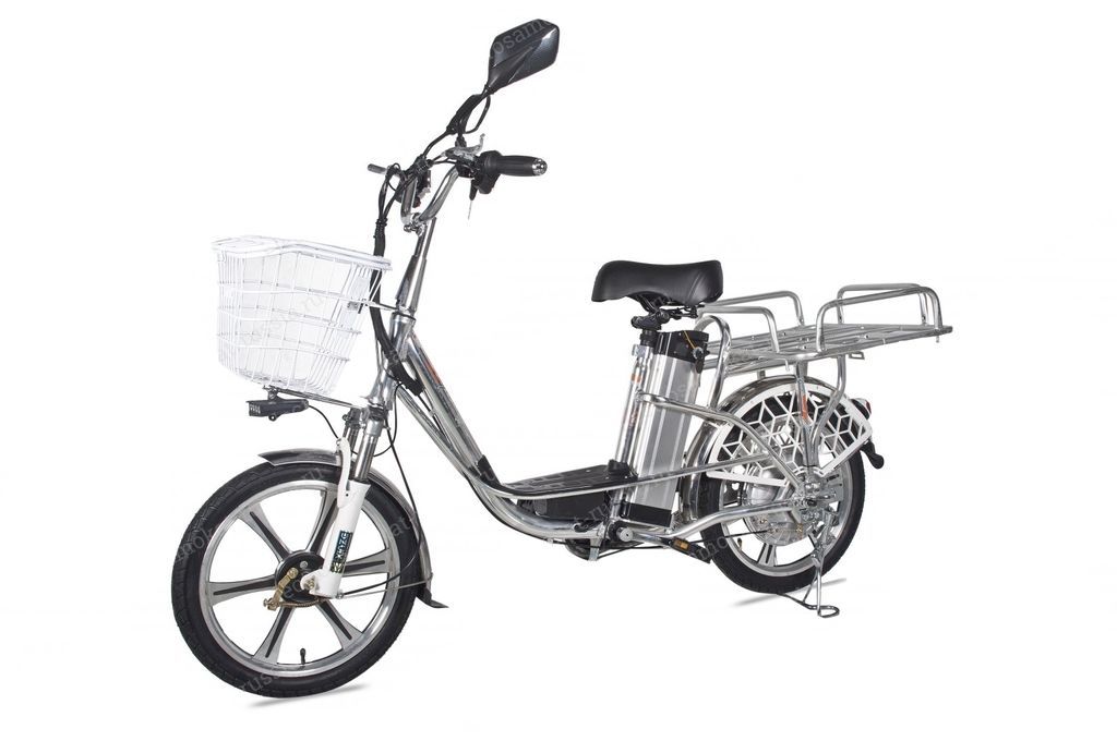 Обновленная версия городского электровелосипеда Колхозник. Надежный двухместный электровелосипед доставит вас и вашего ребенка в любое место назначения. В модели предусмотрена подножка для ног пассажира. Особенность конструкции обеспечивает комфортное передвижение в любое время суток. Также у электровелосипеда Колхозник имеется достаточно вместительная корзина спереди, что обеспечивает еще больший комфорт при поездках в магазин или за город.