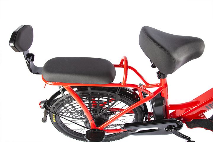 Грузоподъёмность в 130 килограмм позволяет перемещаться на электровелосипеде вдвоём. К этому располагает удобное мягкое сиденье для пассажира со спинкой. При желании оно легко снимается и велосипед можно оснастить грузовым багажником.