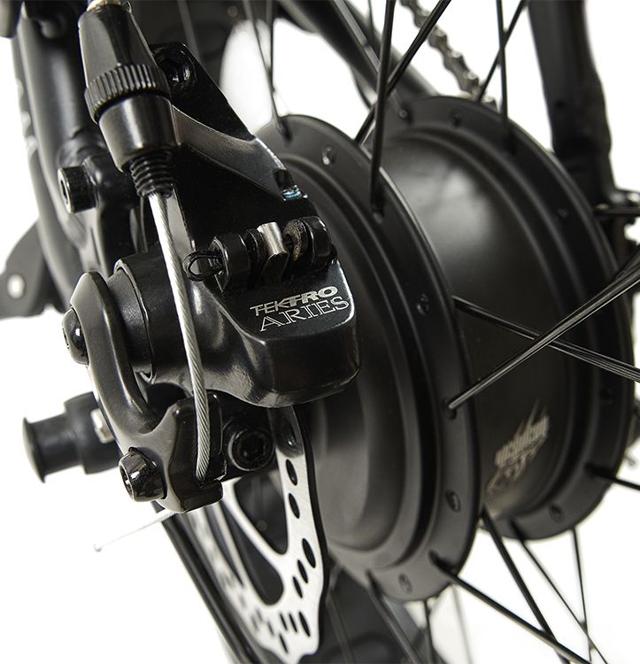 Для велосипеда такого класса, такой небольшой мощности и веса достаточно ободных механических тормозов. Они и были установлены на данную модель.