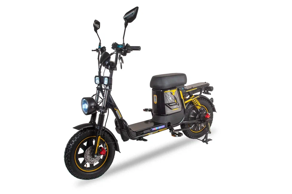 Крупные колеса способствуют устойчивости и проходимости, а общий вес конструкции остаётся в пределах, удобных для повседневного использования. Стильный внешний вид подчеркивает статус модели и делает её заметной на дороге.