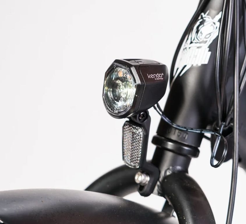 Цветной жидкокристаллический дисплей позволяет выбирать степень помощи при педалировании, следить за уровнем заряда батареи, и конечно, отслеживать все текущие параметры поездки, такие как скорость, пройденная дистанция и время. Изображение отлично видно как в дневное, так и в ночное время.Также для уверенного катания в сумерки и тёмное время суток на вилке установлена светодиодная фара Kendo+ с дополнительным отражателем, делая вас более заметным на дороге. Фара питается от основной батареи велосипеда и не требует подзарядки, что очень удобно.