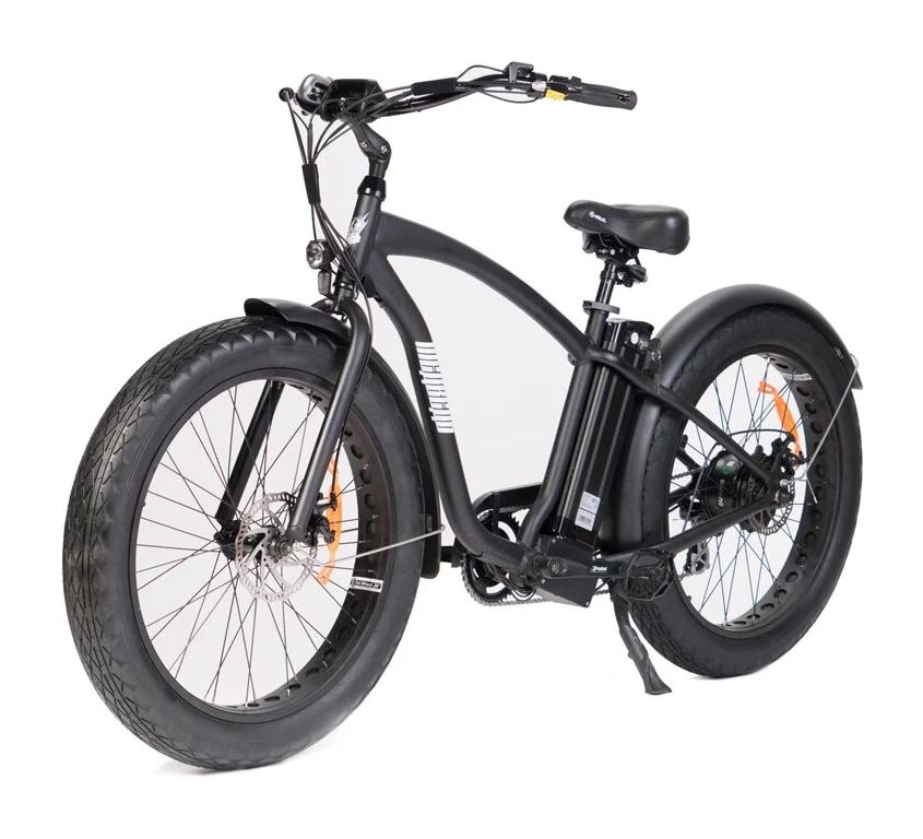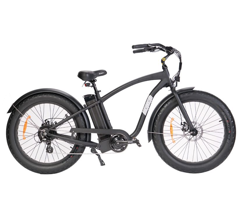 Электровелосипед "Медведь Cruise" имеет брутальный внешний вид и спректирован в стиле чоппера - об этом говорит форма рамы, изгибы руля, чёрный цвет и широкие покрышки. Он имеет удобную посадку и отлично подходит для передвижения по городу. Кроме того, регулируемый вынос руля позволяет настроить велосипед "под себя".Несмотря на отсутствие амортизаторов, велосипед катится очень мягко - по сути, роль амортизаторов играют широкие покрышки, содержащие значительный объём воздуха. Из навесного оборудования стоит отметить задний переключатель Shimano Altus на 7 скоростей и надёжные механические дисковые тормоза Tektro Aries. Для комфортной езды после дождя, на фэтбайке установлены полноразмерные крылья, защищающие велосипедиста от брызг. Благодаря наличию подножки, велосипед всегда можно поставить там, где это удобно, не прислоняя и не опуская на землю.