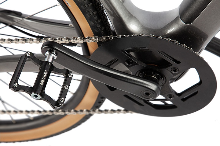 Жесткая подвеска и карбоновая рама гарантируют легкость и прочность конструкции, что повышает комфорт во время поездок.