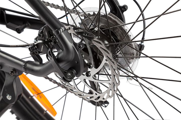 На Eltreco TOP установлены гидравлические дисковые тормоза Shimano, спортивное сиденье "лодочка", задний переключатель Shimano Altus на 9 скоростей и прекрасно зарекомендовавшая себя вилка SR Suntour XCM30 — всё в этом электровелосипеде создано для того, чтобы вы уверенно и легко себя чувствовали в поездках по лесным тропинкам, в полях, на природе и в сложном городском ландшафте!