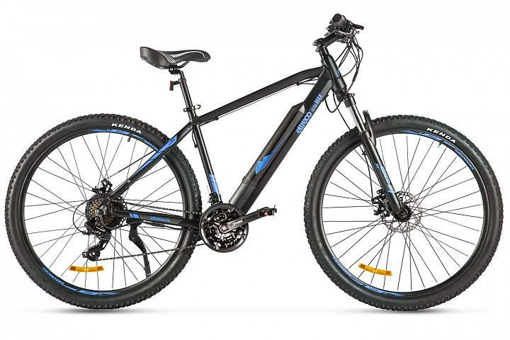 У новой модели от Eltreco лёгкая алюминиевая рама с интегрированной съёмной батареей (улучшенная развесовка по сравнению со старой моделью), большие колёса 29" и покрышки Kenda с универсальным протектором, 21 скорость от Shimano, пружинно-эластомерные амортизационная вилка с блокировкой, надёжный электромотор 350 Ватт и аккумуляторная батарея на 12 Ач, позволяющая преодолевать большие расстояния без подзарядки!