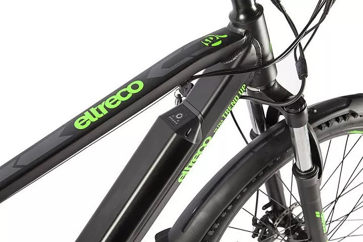 Cовременный электрический хардтейл Ultra Trend UP! с колёсами 27,5" оснащен быстросъёмной аккумуляторной батареей, изящно интегрированной в лёгкую алюминиевую раму. В комплектацию электровелосипеда входит прочный задний металлический багажник и пластиковые крылья.
