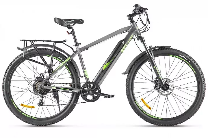 Cовременный электрический хардтейл Ultra Trend UP! с колёсами 27,5" оснащен быстросъёмной аккумуляторной батареей, изящно интегрированной в лёгкую алюминиевую раму. В комплектацию электровелосипеда входит прочный задний металлический багажник и пластиковые крылья.