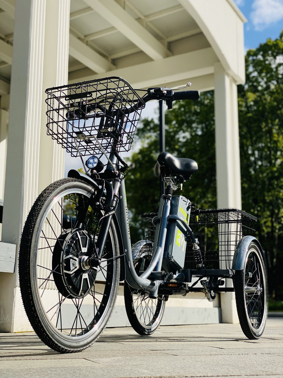 Этот электровелосипед особенно подходит для пожилых людей, так как его трехколесная конструкция обеспечивает отличную устойчивость и безопасность, позволяя сосредоточиться на дороге.