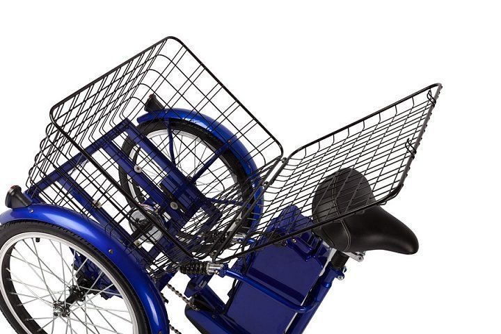 Стальная рама трицикла выдерживает нагрузку до 110 килограмм. При этом заднюю часть рамы с корзиной можно нагружать до 50 кг.