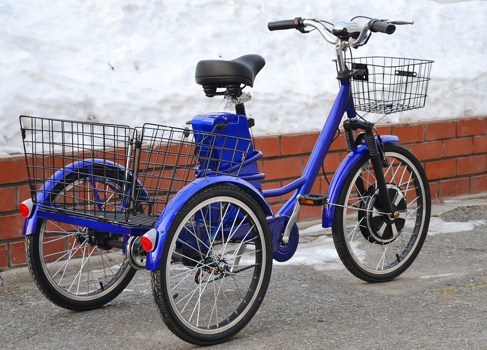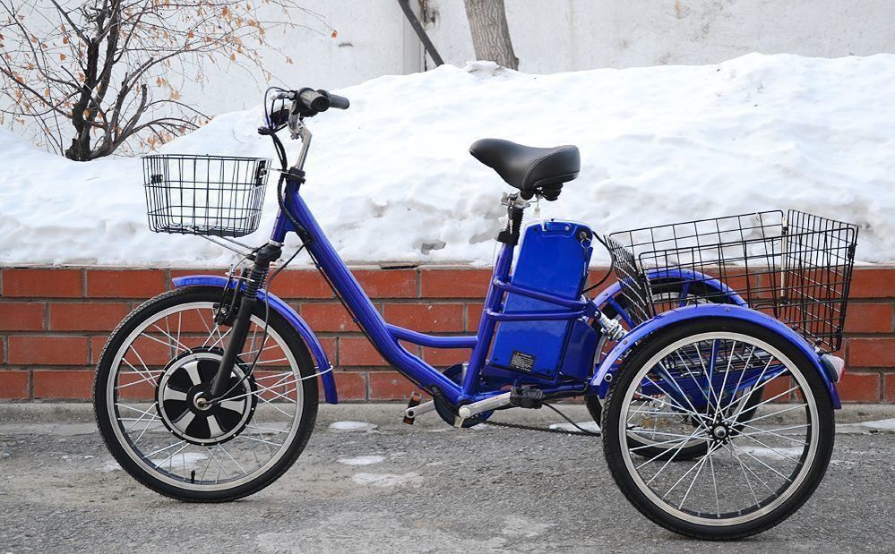 Электродвигатель трицикла мощностью 750 Вт справляется с высокими нагрузками, а аккумулятор позволяет проехать до 40 километров на одном заряде.