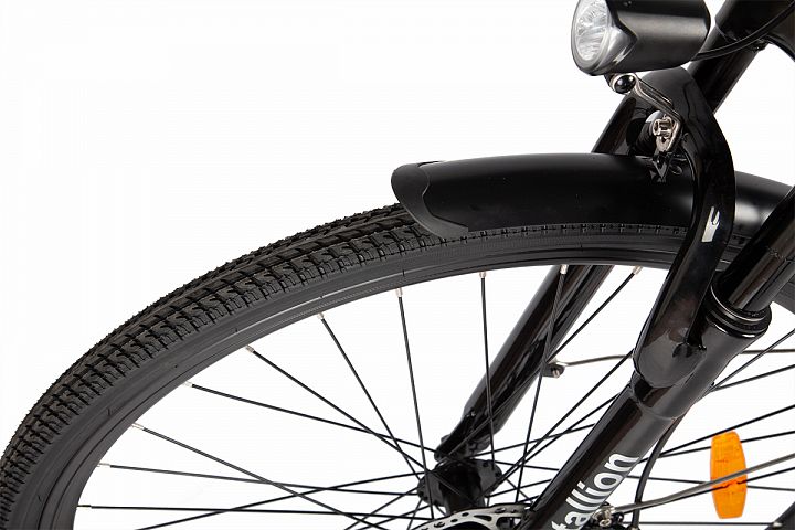 Модель имеет алюминиевую раму, сочетающую в себе прочность, долговечность и небольшой вес. Оснащённый большими 28-дюймовыми колёсами и тонкими туристическими шинами, он обеспечивает превосходную устойчивость и плавность хода на различных поверхностях.