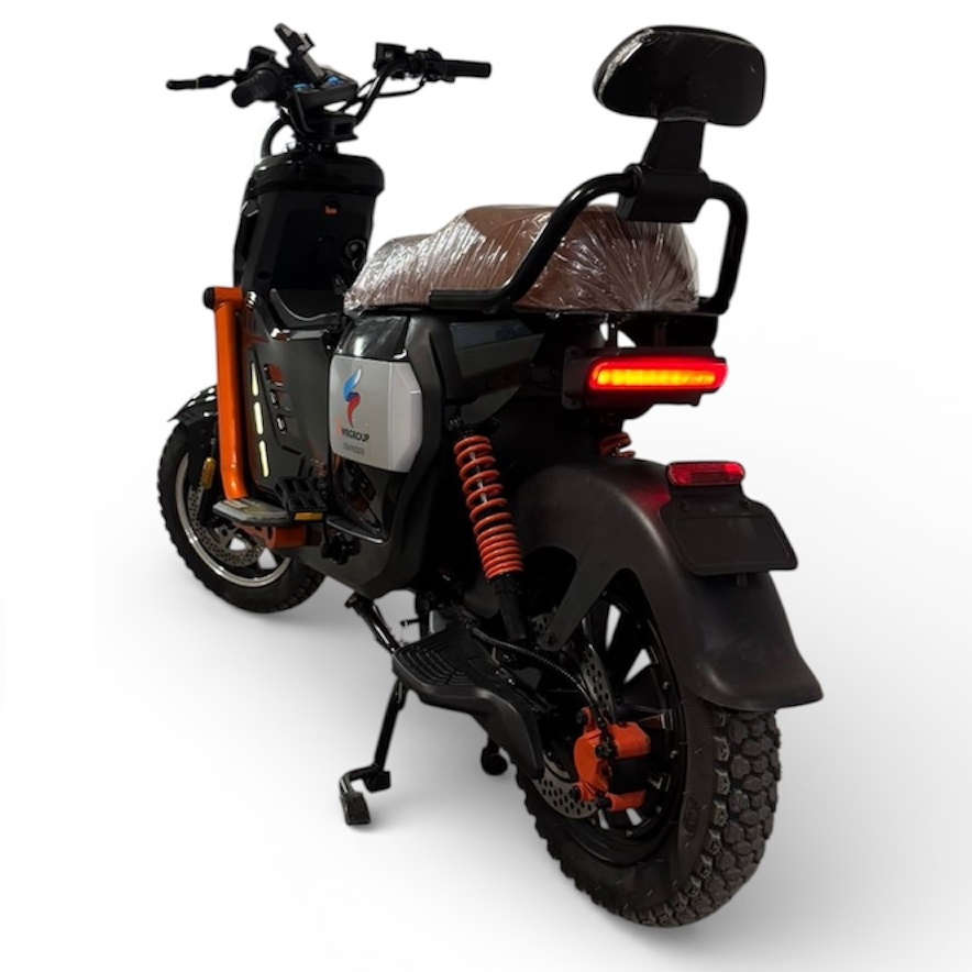 Управляемость и комфорт на скоростях около 60 км/ч обеспечиваются не только тормозами, но и общей архитектурой. Усиленная стальная рама гасит вибрации, а предполагаемая подвеска (характерная для данного класса) и колеса увеличенного диаметра работают над тем, чтобы неровности дороги не превращались в проблему для водителя. Задний привод делает конструкцию ремонтопригодной и дает характерное «подталкивающее» ощущение при разгоне. Этот электровелосипед для тех, кто ценит чувство контроля.