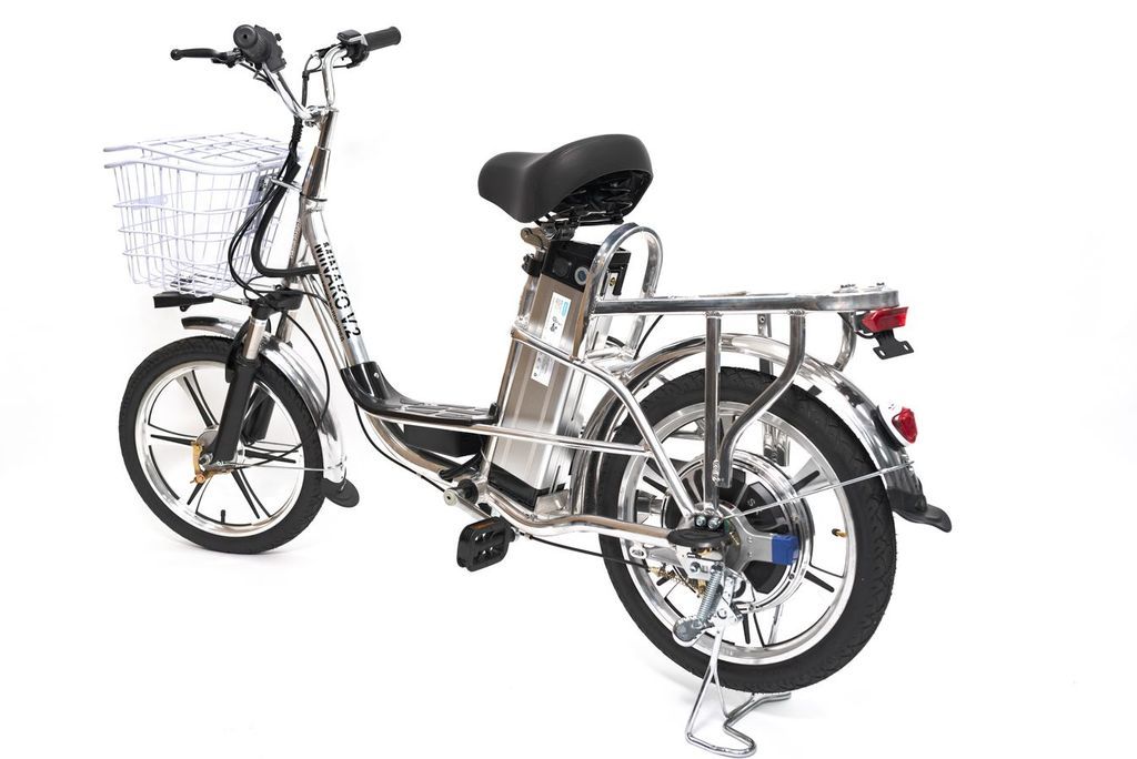 - Колхозник умеет дополнительное сидение для второго пассажира и сетку для продуктов спереди. Идеальный загородный вариант электровелосипеда.