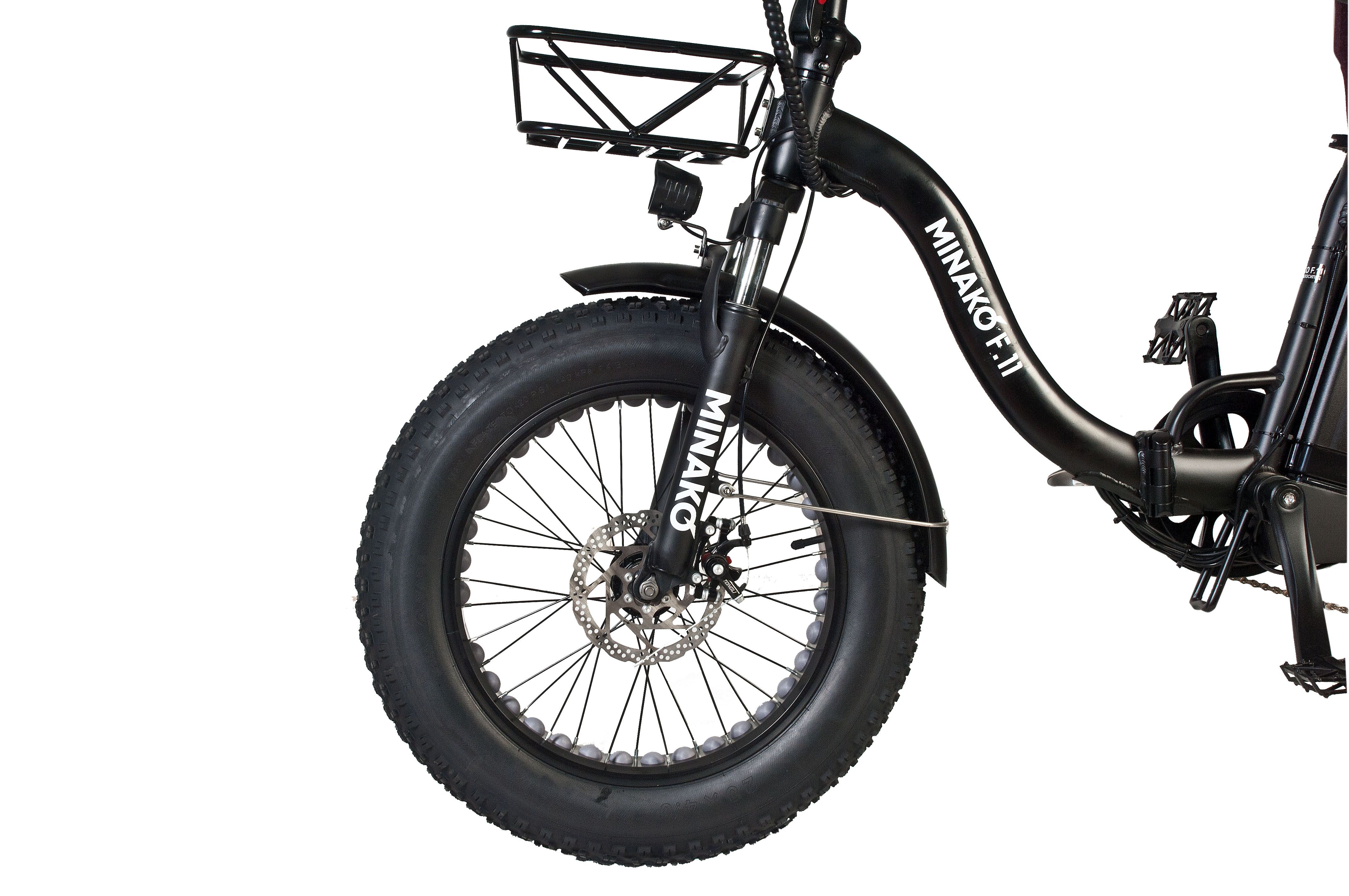 Minako F11 оборудован системой амортизации, что значительно улучшает комфорт при езде по неровным поверхностям. Система амортизации позволяет смягчить удары и вибрации, обеспечивая более плавный и приятный опыт езды, особенно на пересеченной местности.