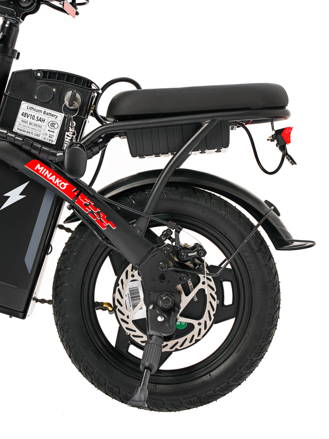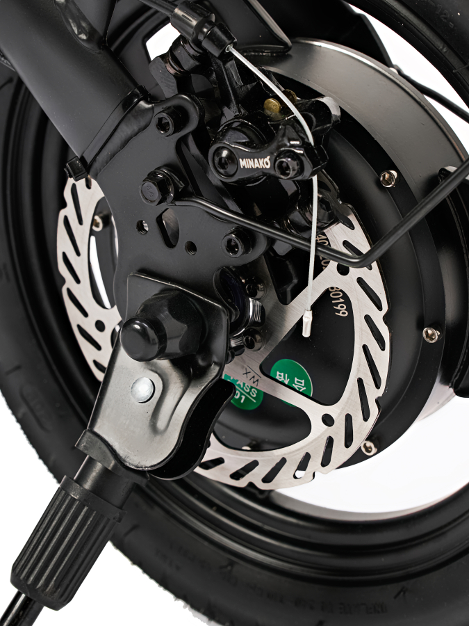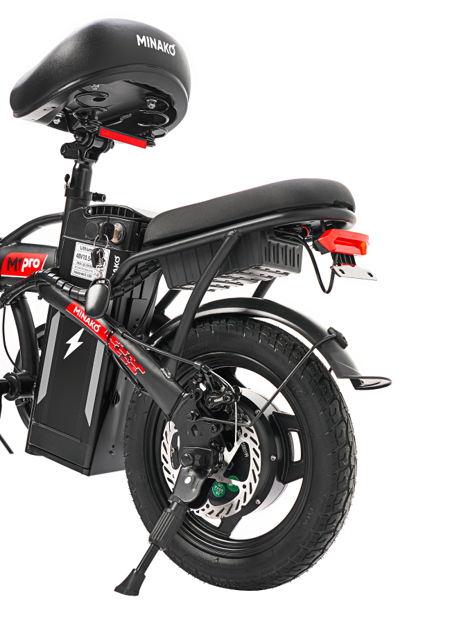 Электровелосипед Minako M1 Pro оснащен дисковыми механическими тормозами, которые обеспечивают надежное и эффективное торможение в любых условиях. Задний привод и шины размером 14 x 2.125 обеспечивают отличное сцепление с дорогой, что делает поездки более безопасными и комфортными. Дополнительные функции, такие как сигнализация и поворотники, повышают уровень безопасности при движении по городу.