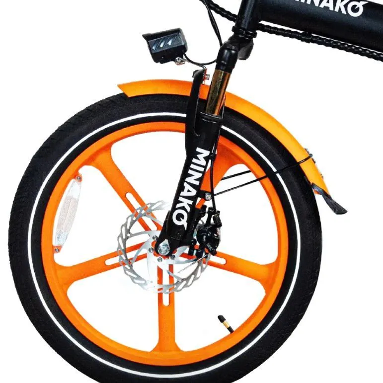 Мотор Minako Street, расположенный в заднем колесе, имеет мощность 500 ватт (маркировка 240W). Максимальная скорость, которую способен развить велосипед в режиме езды с помощью электротяги – до 45 километров в час. Двигатель запитывается от аккумуляторной батареи на 13 ампер-часов. Её запаса энергии хватит на то, чтобы проехать до 50 км.