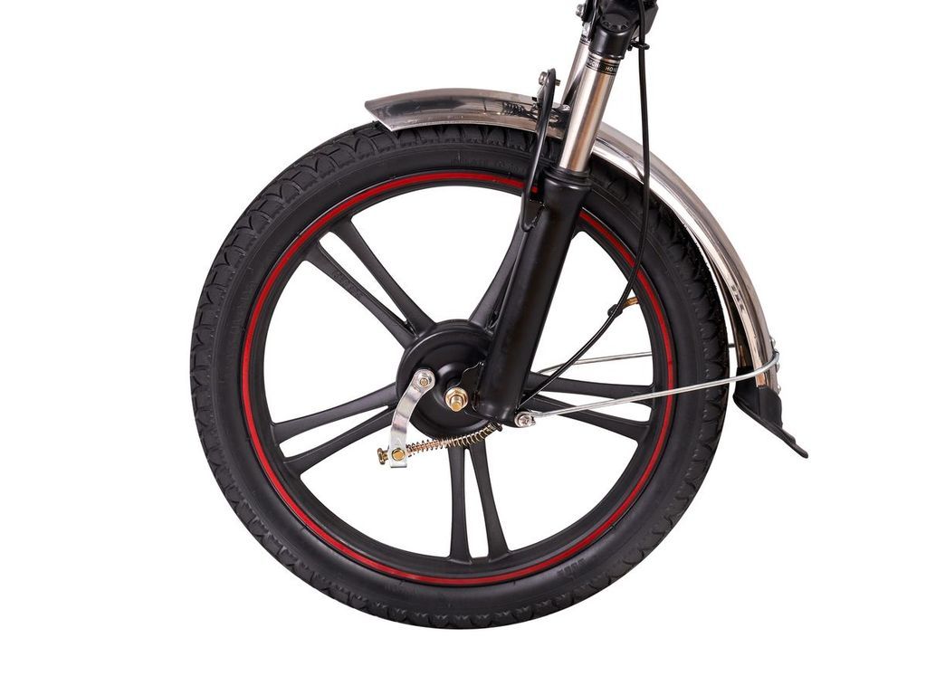 - Мощное мотор-колесо 240Вт - права ни к чему, позволяющие разгоняться до 20 км/ч;