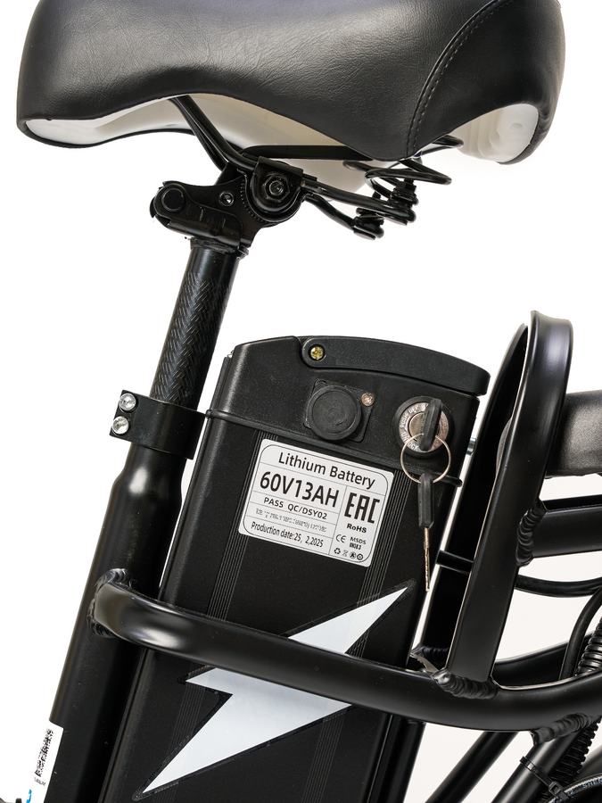 Быстросъемная батарея, расположенная за подседельной трубой, позволяет легко заменять аккумулятор при необходимости, что добавляет удобства в использовании.