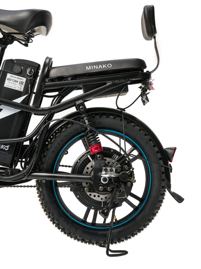 Minako V.8 Pro оснащен двигателем мощностью 240 Вт, который обеспечивает стабильную работу и эффективное использование энергии. Аккумулятор с емкостью 13000 мАч и напряжением 60 В позволяет проезжать до 45 км на одном заряде, а время зарядки составляет всего 3 часа, что делает его удобным для использования в повседневной жизни.