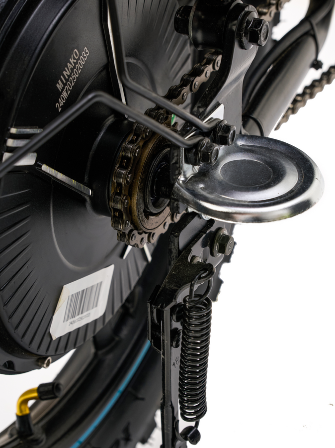Для удобства пользователя Minako V.8 Pro предлагает регулируемое по высоте сиденье и руль, что позволяет настроить электровелосипед под индивидуальные предпочтения. Подседельный амортизатор обеспечивает дополнительный комфорт во время поездок по неровным поверхностям.