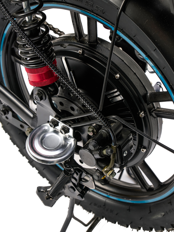 Электровелосипед имеет двухколесную конструкцию с диаметром колес 18 дюймов, что обеспечивает отличную маневренность и комфорт при езде по городским улицам и легкому бездорожью.