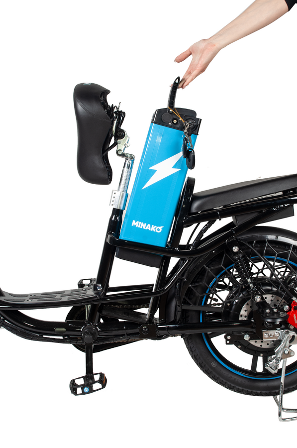 Для удобства пользователя Minako V.8 Pro предлагает регулируемое по высоте сиденье и руль, что позволяет настроить электровелосипед под индивидуальные предпочтения. Подседельный амортизатор обеспечивает дополнительный комфорт во время поездок по неровным поверхностям.