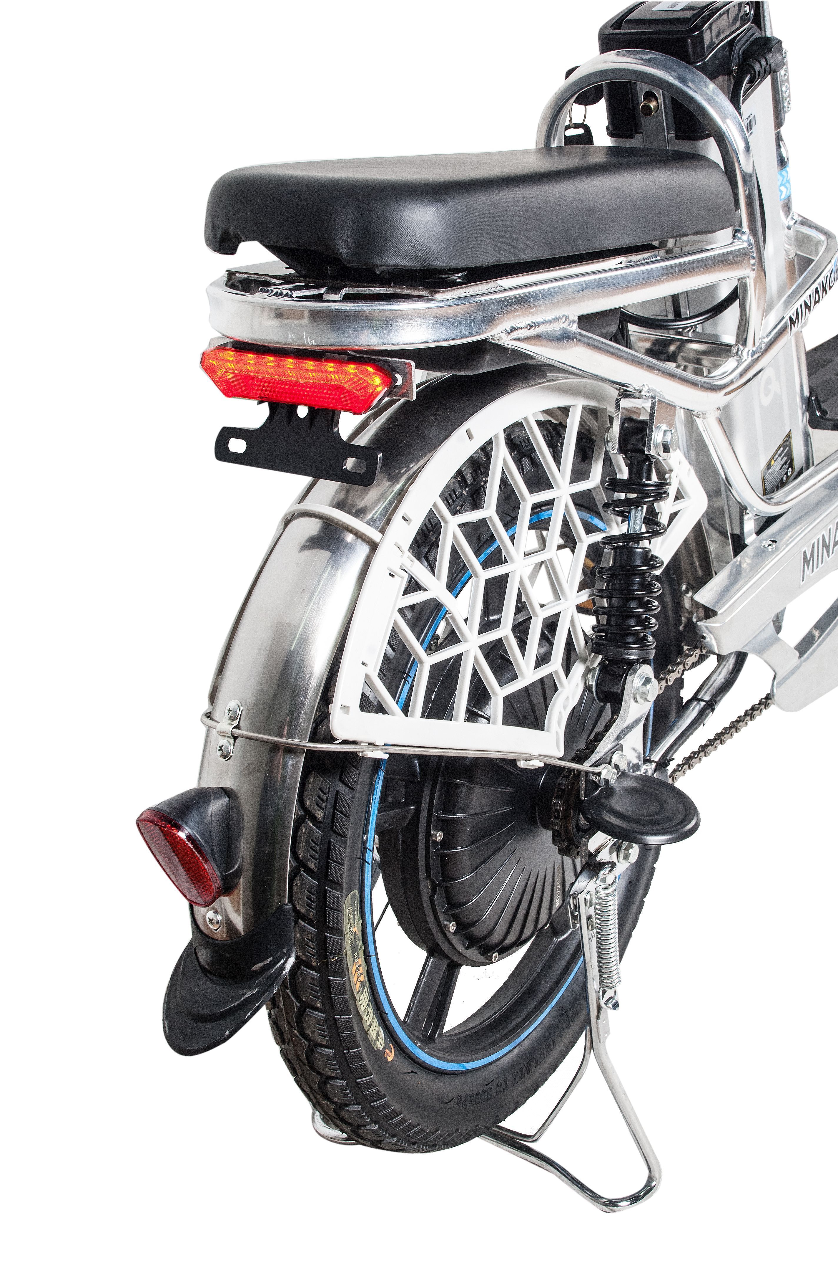 Minako V.8 Pro — это практичное решение для тех, кто ищет надёжный электротранспорт для работы или регулярных поездок по городу. Простота устройства делает его удобным в обслуживании, а съёмная батарея позволяет заряжать её отдельно от велосипеда.