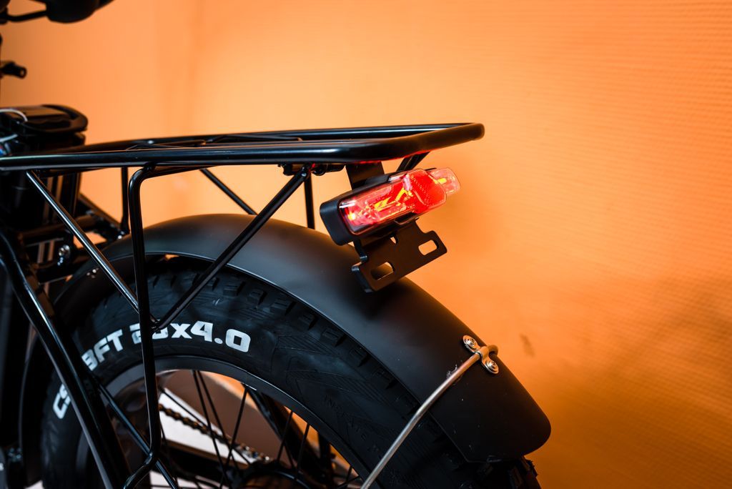 - Спереди установлена светодиодная фара, ярко освещающая дорогу в темное время суток и делающая заметным велосипедиста другим участникам движения